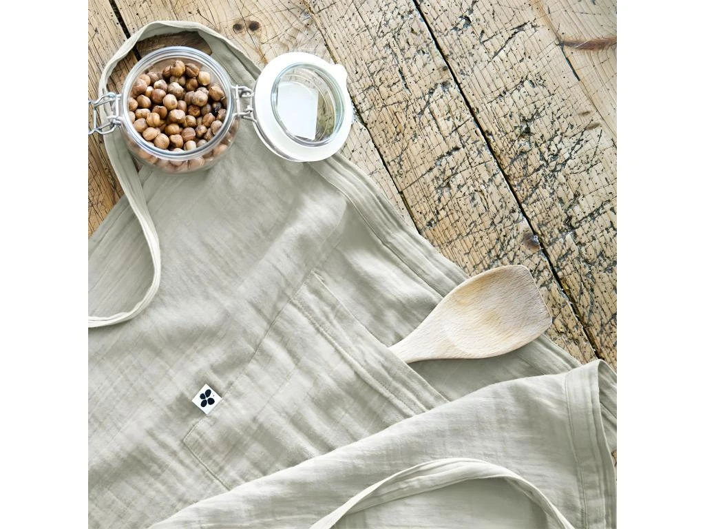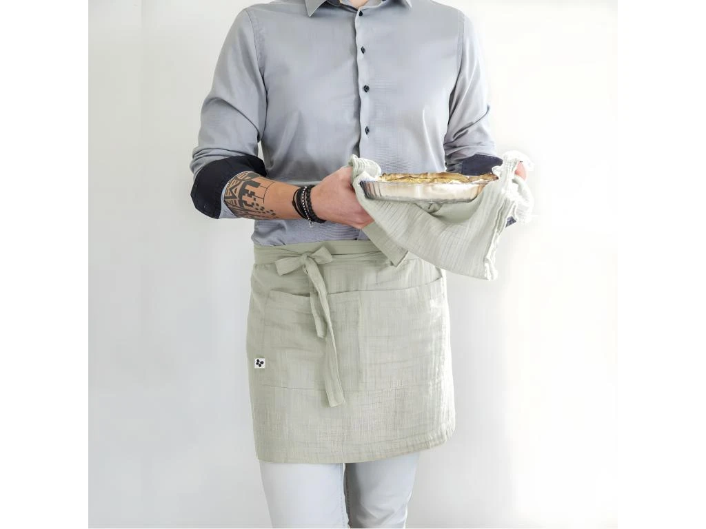 Demi-Tablier avec Double Poche Gaze de Coton Vert d’eau Ourea.