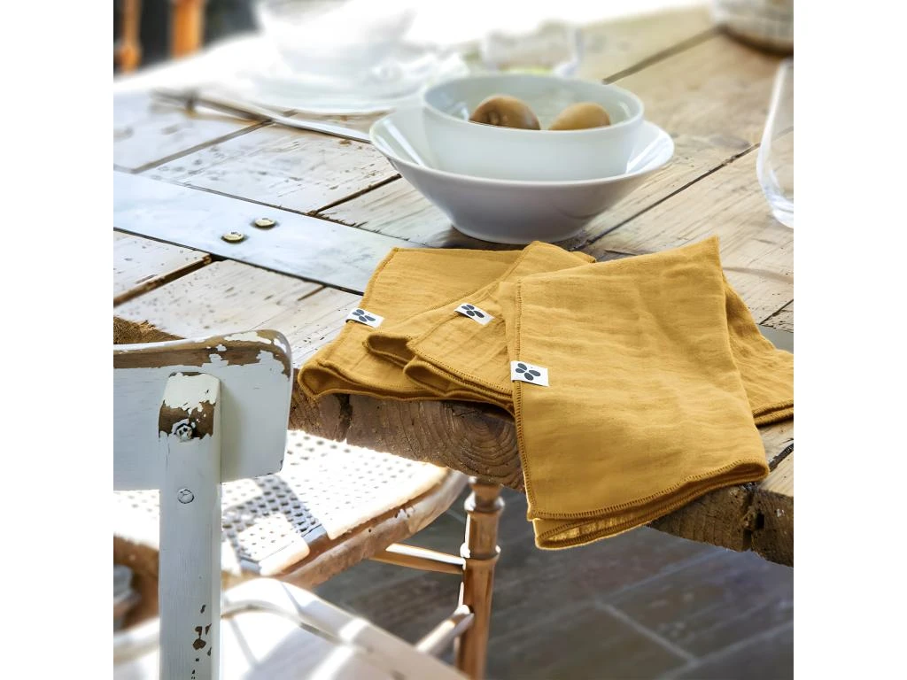 Lot de 3 Serviettes 40x40cm Gaze de Coton Safran Ourea.
