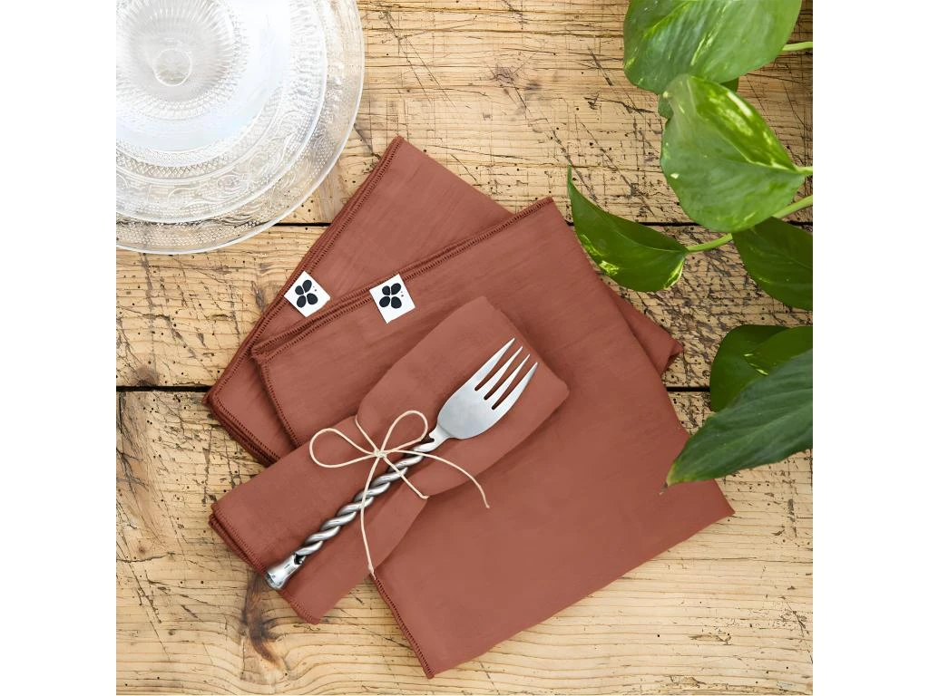 Lot de 3 Serviettes 40x40cm Gaze de Coton Terracotta Ourea.