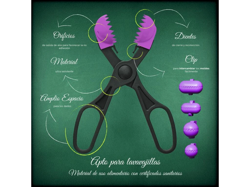 Le croquetera est un ustensile fabriqué en Espagne, avec un brevet espagnol, et en dehors de son utilité, il est présenté dans des couleurs assorties vives (pistache, rose, rouge, orange, bleu, turquoise, jaune, violet et vert).