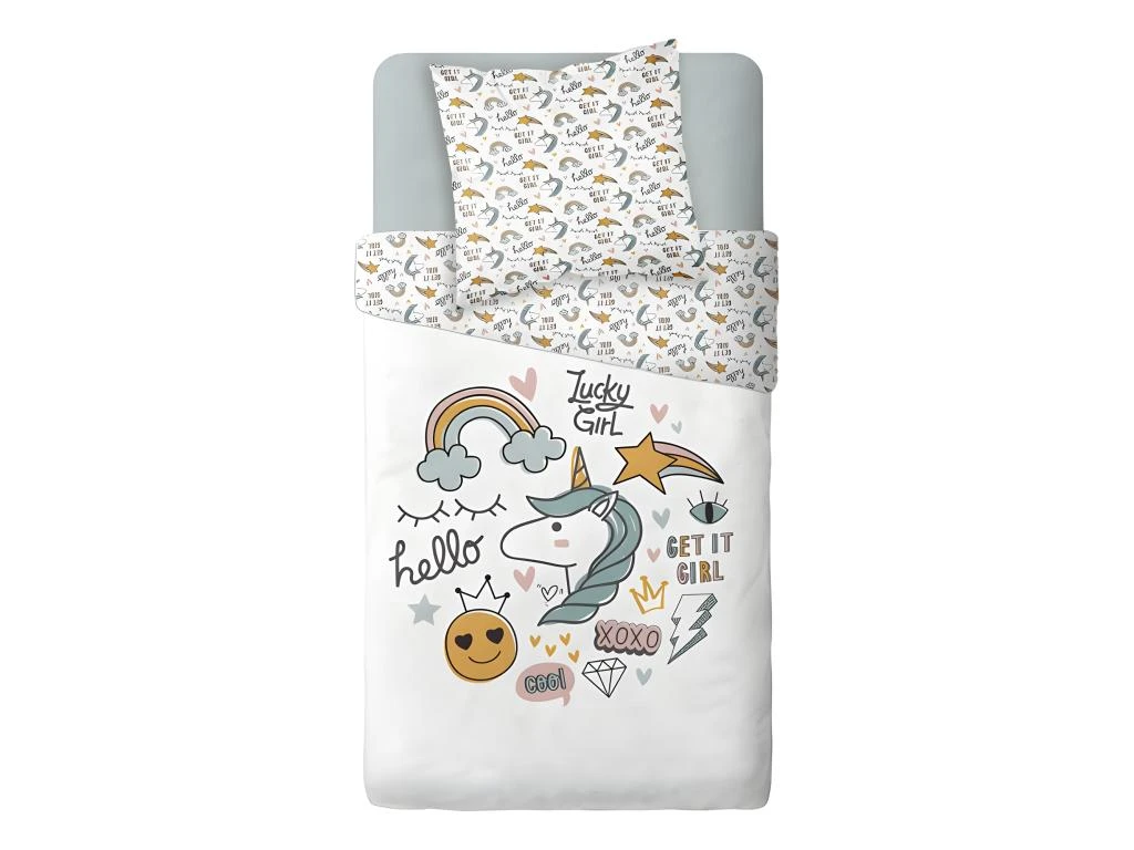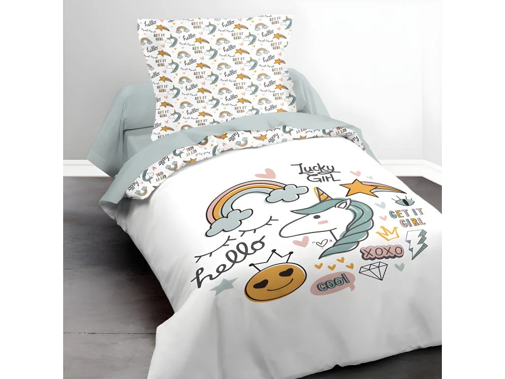 parure de couette 140 x 200 « lucky girl » réversible 100% coton / 57 fils/cm2