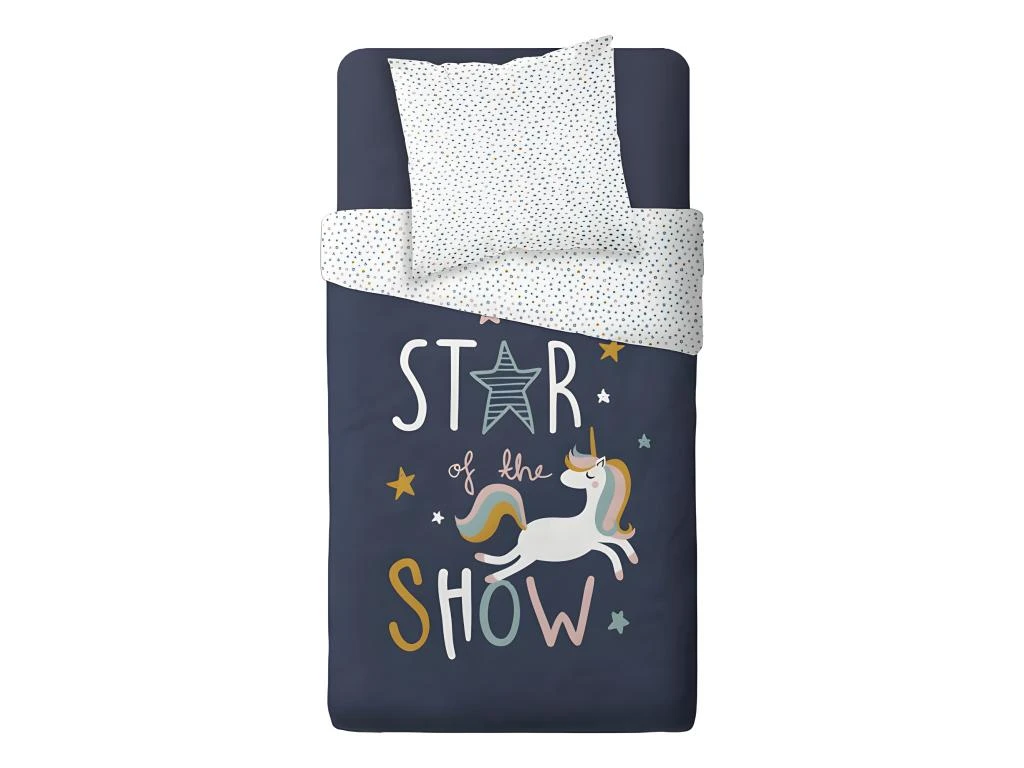 parure de couette 140 x 200 « star of the show » réversible 100% coton / 57 fils/cm2