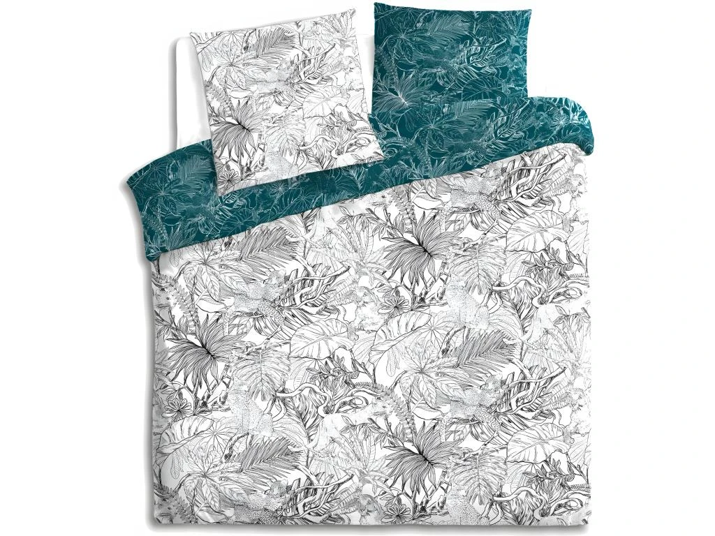 Parure de lit 2 Personnes 260 x 240 cm Housse de couette avec 2 taies imprimé Jungle – La parure se compose d’une housse de couette et de 2 taies d’oreiller –
