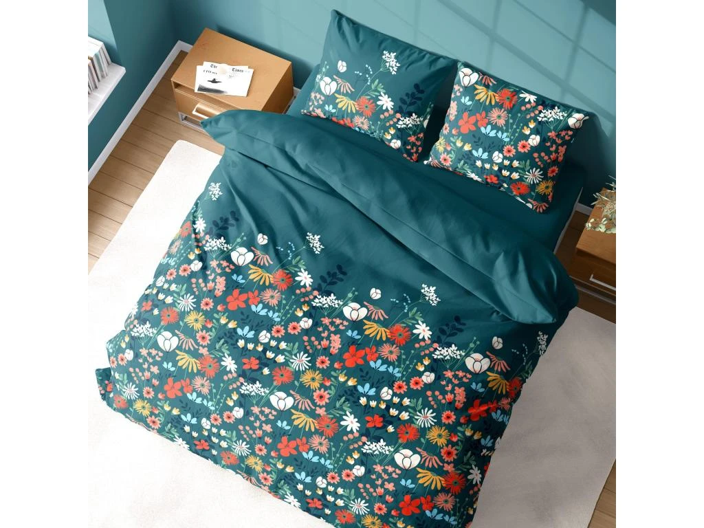Ambiance florale avec cette parure de lit 2 personnes avec un imprimée de différentes fleurs et bourgeons pour ensoleiller votre intérieur.