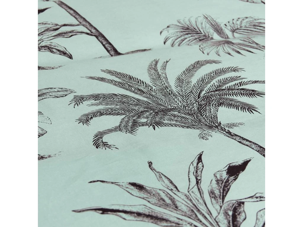 Ambiance jardin des plantes avec cette parure de lit imprimée de palmiers et plantes crayonnés dans des tons de gris sur fond bleu océan. La collection linge de lit PASSADA BLEU OCÉAN en coton issu de l’agriculture biologique est idéale pour une décoration de chambre originale.