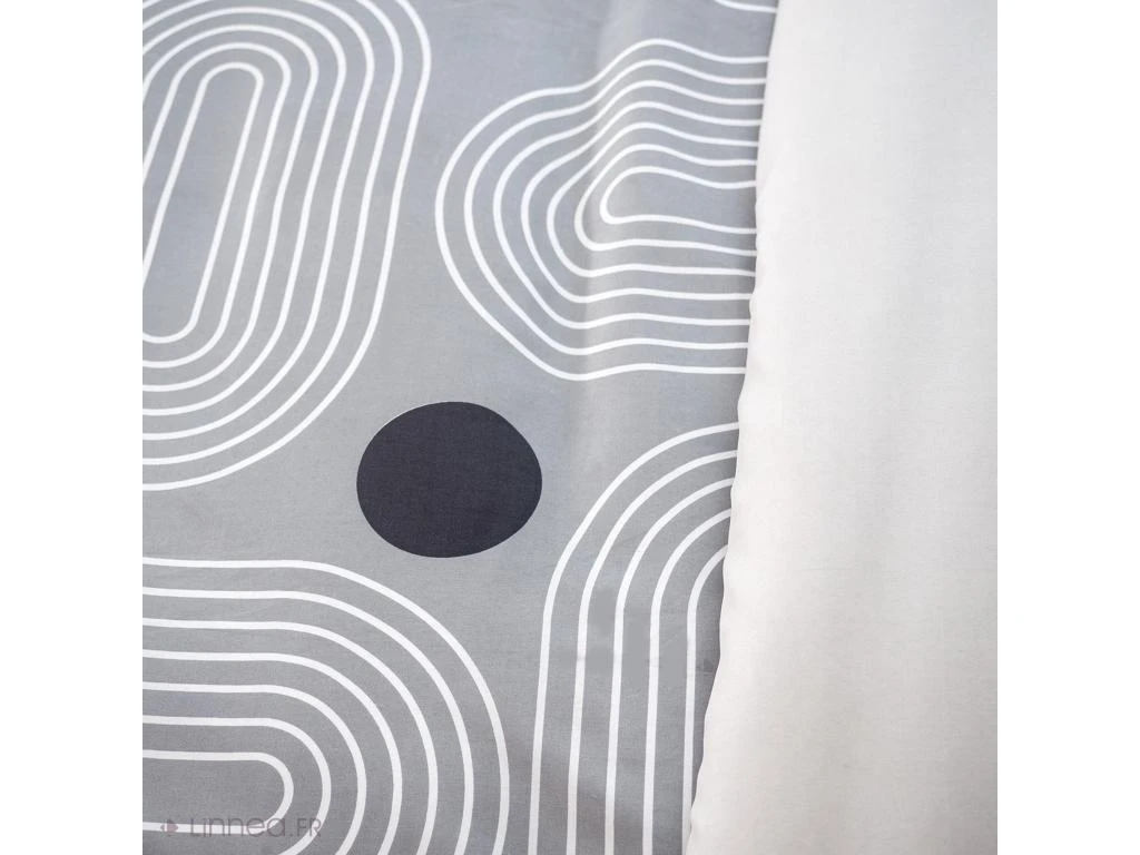 Style intemporel et graphique pour la parure de lit FROGGUIE. Réversible, elle possède une face unie grise et une face imprimée d’un all-over de cercles blancs imbriqués sur fond gris. Cette parure allie la douceur et la résistance grâce à des centaines de microfilaments de polyester enroulés pour constituer chaque fil de cet article. Ces microfibres sont plus solides qu’un simple fil de polyester et permettent au tissu d’être émerisé. Cet emerisage va donner son toucher peau de pêche au tissu pour le rendre encore plus confortable. En plus, c’est un petit prix !