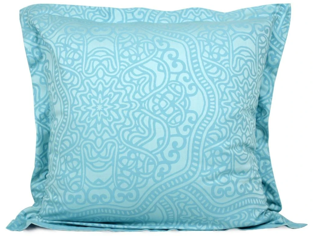 Taie d’oreiller 65×65 cm en satin jacquard avec mosaïques dans des tons bleu clair.