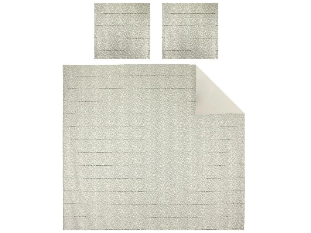 Parure de lit tissĂ© teint composĂ©e d’une housse de couette 260×240 cm et de 2 taies 65×65 cm.