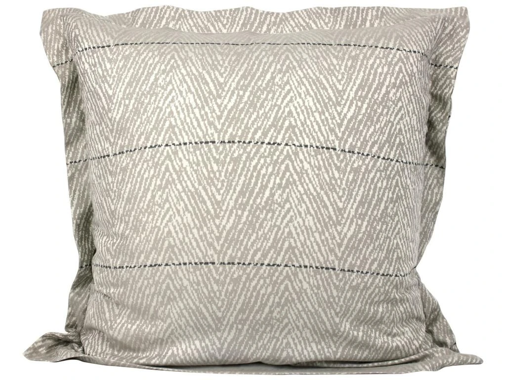Taie d’oreiller 65×65 cm en satin jacquard avec motifs chevrons ivoire et marron clair.