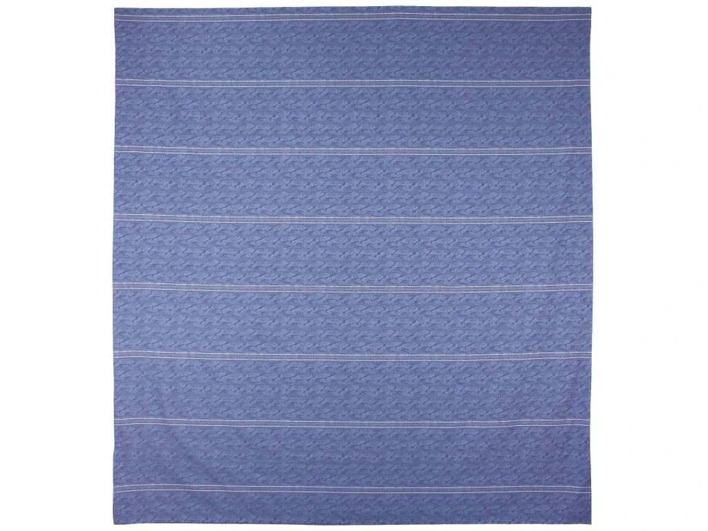 Ambiance grand large avec la collection en satin Vendôme et ses motifs mailles façon amarres dans des teintes bleues.