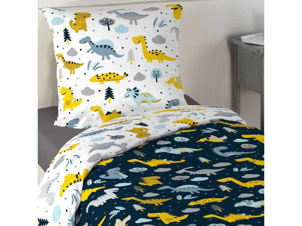 La parure de lit enfant Dinoblue 140×200 procurera à votre enfant confort et douceur lors de son sommeil et apportera une touche fun de décoration à sa chambre à coucher. En effet, les motifs all-over dinosaures avec différentes espèces donneront à la chambre de votre enfant une touche de gaieté supplémentaire. Cette parure de lit est réversible selon les envies de votre enfant avec une face à fond bleu et l’autre à fond blanc.
