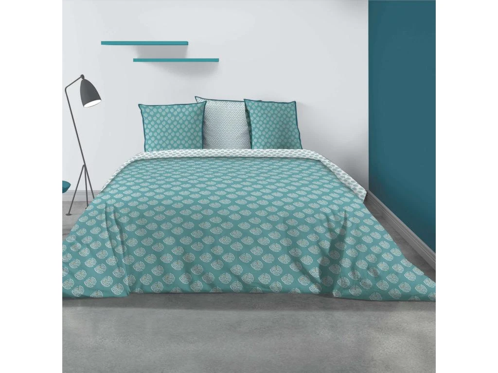 Parure De Lit – Housse De Couette 100% Coton 57 Fils Kady Blue : Taille – 220 X 240 Cm