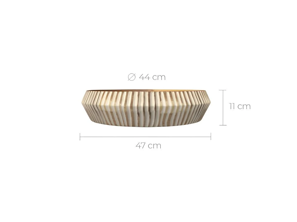 Les amoureux d’ambiance bohème vont sürement craquer pour le plat décoratif Khan en bois gravé. Cette pièce artisanale se distingue par un format rond (47 cm). Sa structure en bois clair est striée de blanc pour un effet ethnique chic. On adopte ce vide-poche dans un salon pour ranger quelques objets que l’on aime avoir à portée de main. Déposé sur le sol ou sur une table basse, son pouvoir décoratif est tout simplement irrésistible.