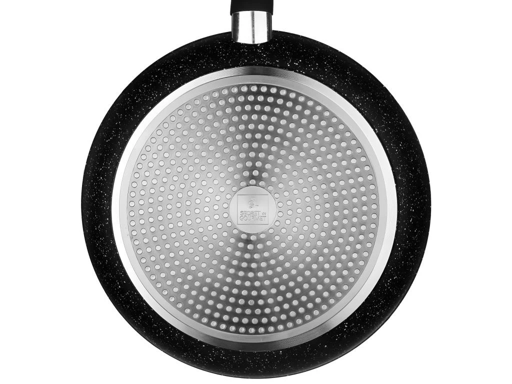 Poêle alu forgé caractère, alu, PTFE, inox, bakel, silicone, dimensions D. 30 x H. 5.3 cmCouleur : NoirDimensions (L x l x H) : 48,3 x 30,8 x 8,7 cmMarque : SECRET DE GOURMETMatière(s) : Alu, PTFE, inox, bakel, silicone