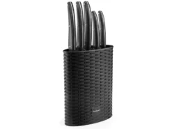 La collection Prestige de Lou Laguiole dĂ©cline ses lignes contemporaines sur une gamme cuisine et steak, en finition satinĂ©e. Ces couteaux sont dotĂ©s d’une lame pleine soie et d’un montage rivets en inox. Manches noirs texturĂ©s avec effet cuir.