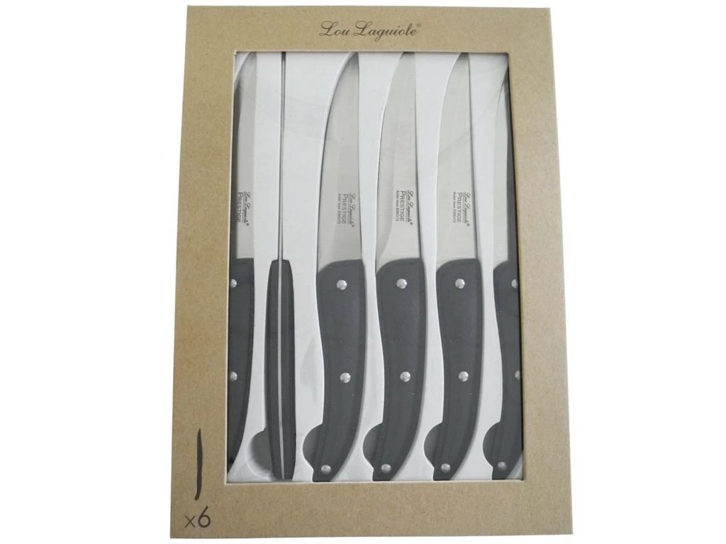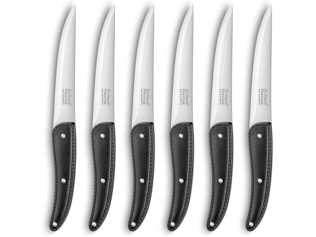 La collection Prestige de Lou Laguiole décline ses lignes contemporaines sur une gamme cuisine et steak, en finition satinée. Ces couteaux sont dotés d’une lame pleine soie et d’un montage rivets en inox. Manches noirs texturés avec effet cuir.