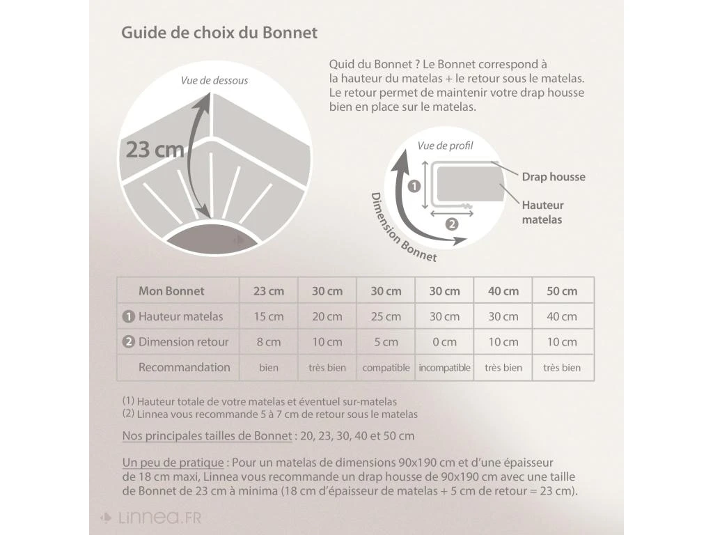 - Forme drap housse bonnet 23cm pour matelas jusqu’à 18cm