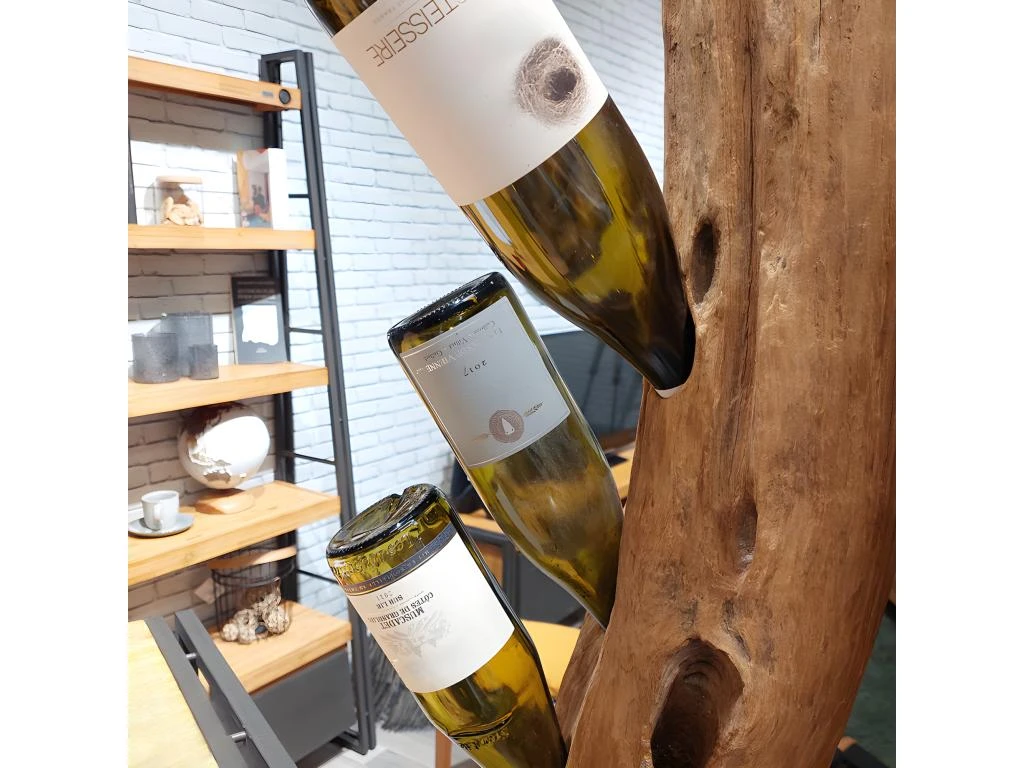 Faites entrer la nature dans votre intérieur avec le grand porte-bouteilles TOKELA. En bois de teck brut, il dispose de nombreux trous pour accueillir vos plus belles bouteilles. Issu directement d’un tronc de teck massif, ce porte-bouteilles est une véritable œuvre d’art qui trônera avec élégance dans votre cuisine, salle à manger ou proche de votre bar. Sa forme naturelle de tronc d’arbre est authentique et ne laissera pas indifférent. On aime son style naturel qui apportera une ambiance authentique et pleine de caractère à votre intérieur. Une œuvre artisanale en bois de teck brut. Chaque pièce est unique.