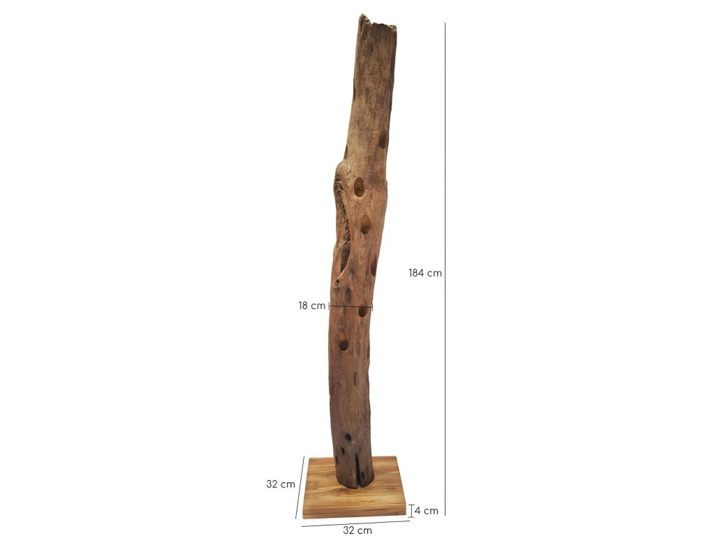 - DIMENSIONS GÉNÉRALES APPROXIMATIVES : Hauteur 184 cm x Longueur 32 cm x Profondeur 32 cm / Diamètre tronc 18 cm environ / Epaisseur du socle carré 4 cm.