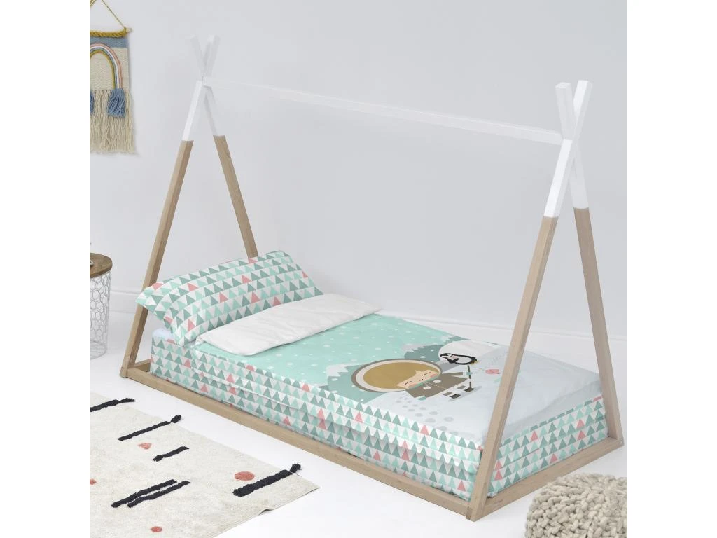La housse de couette et le drap-housse ajustable sont reliés par une fermeture à glissière cachée par un rabat et dotée d’un système de soufflet qui facilite la mobilité dans le lit. Pour être toujours bien couvert!