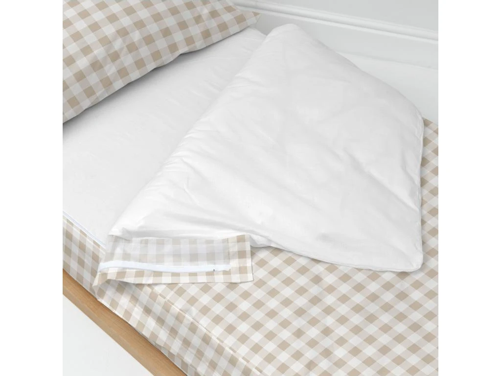 La housse de couette et le drap-housse ajustable sont reliés par une fermeture à glissière cachée par un rabat et dotée d’un système de soufflet qui facilite la mobilité dans le lit. Pour être toujours bien couvert!