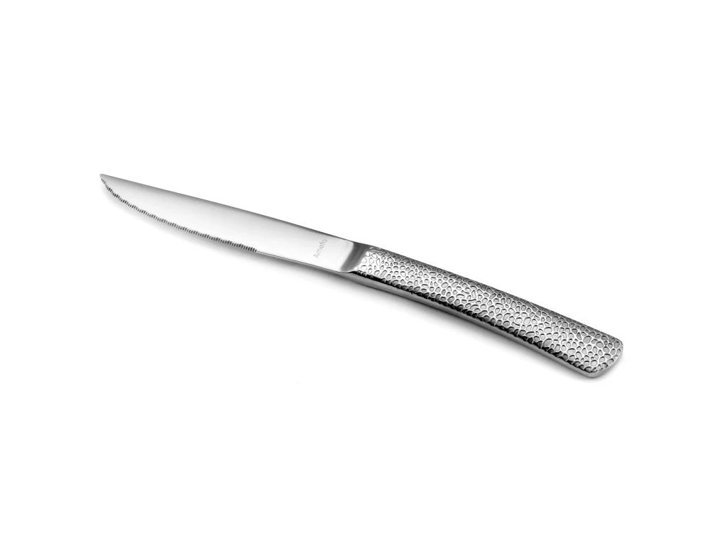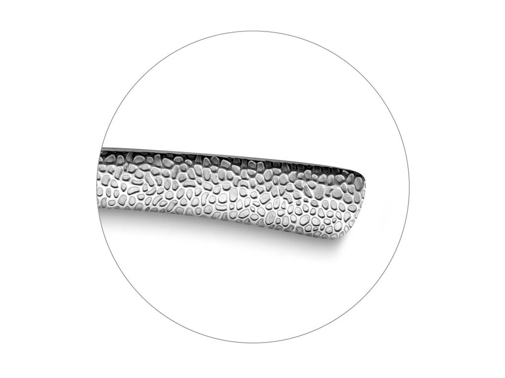 Un couteau steak tout inox en version XL, gravé sur les 2 faces, avec une lame micro-dentée pour trancher sans effort toutes les viandes.