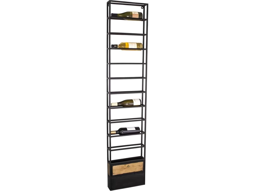 Support bouteilles de vin mural en fer et manguier