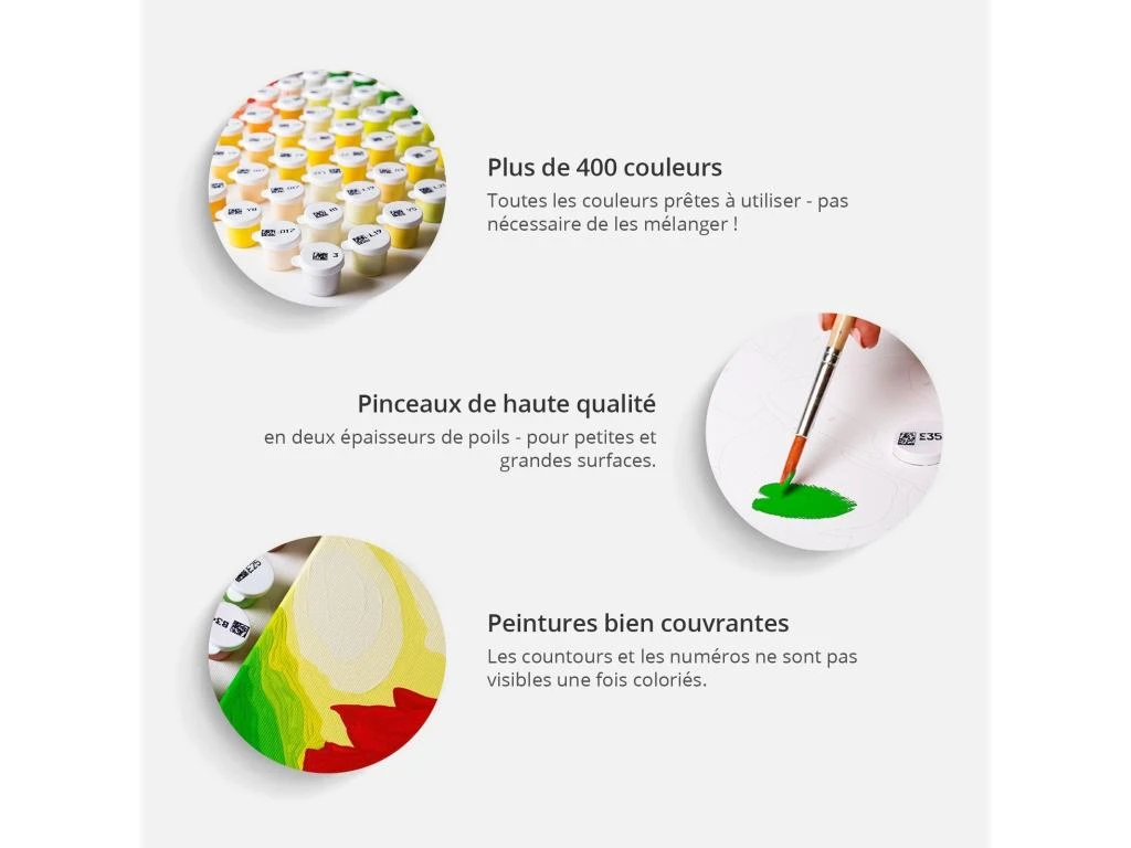 Peinture : Fourni avec des peintures acryliques aux pots bien ajustées au motif choisi