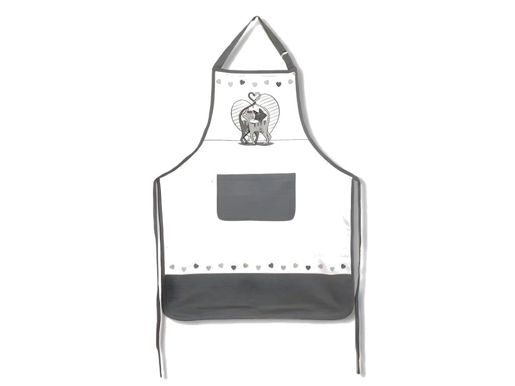 Tablier adulte à nouer Chats amoureux Blanc Taille adulte 100% coton Dim : 90 x 70 cm