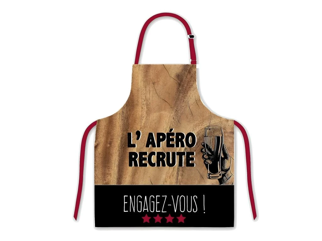 Tablier adulte à nouer Marron – Apéro Taille adulte 100% coton Hauteur 78 cm – Largeur 75 cm