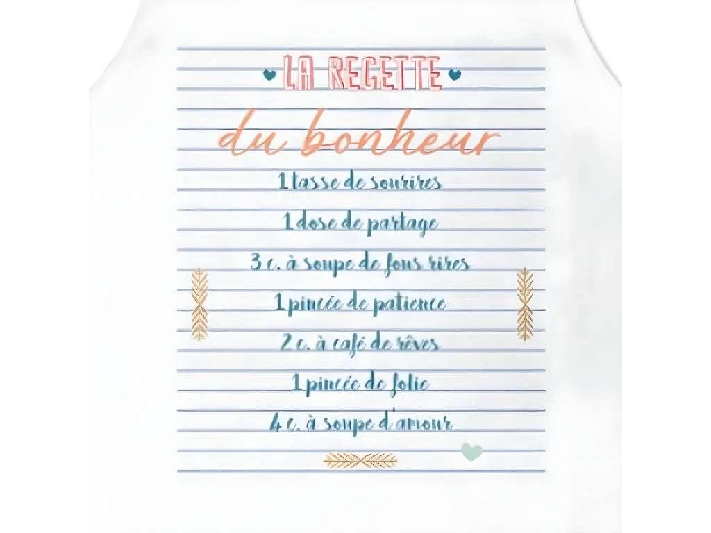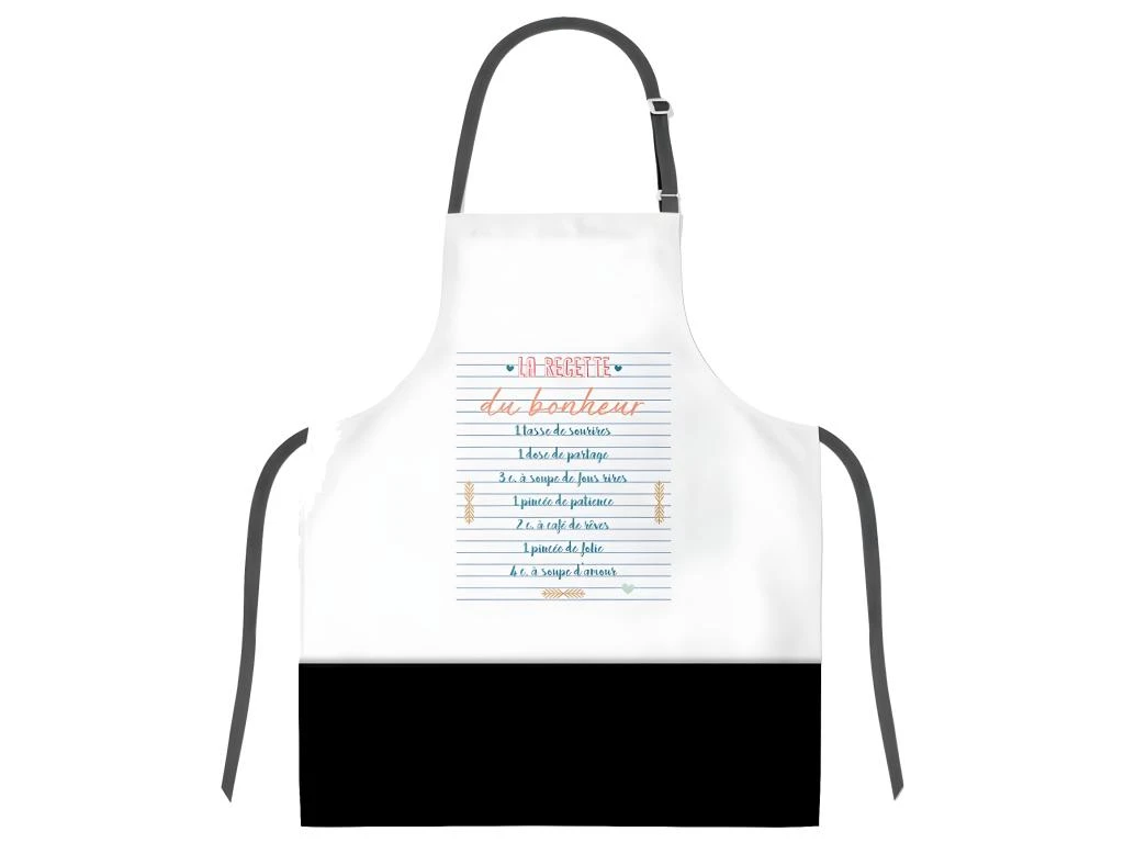 Tablier adulte à nouer – Recette bonheur Taille adulte 100% coton Hauteur 78 cm – Largeur 68 cm Créé et imprimé en France