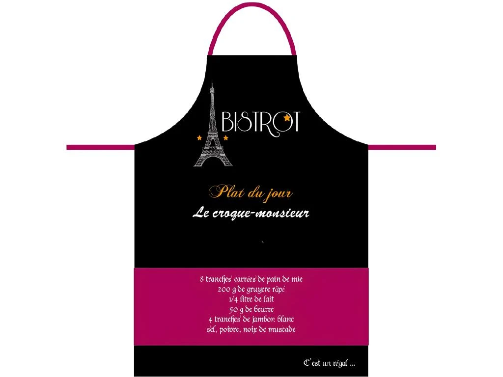 Tablier adulte à nouer – recette du croque-monsieur bistrot Taille adulte 100% coton Dim : 100 x 70 cm