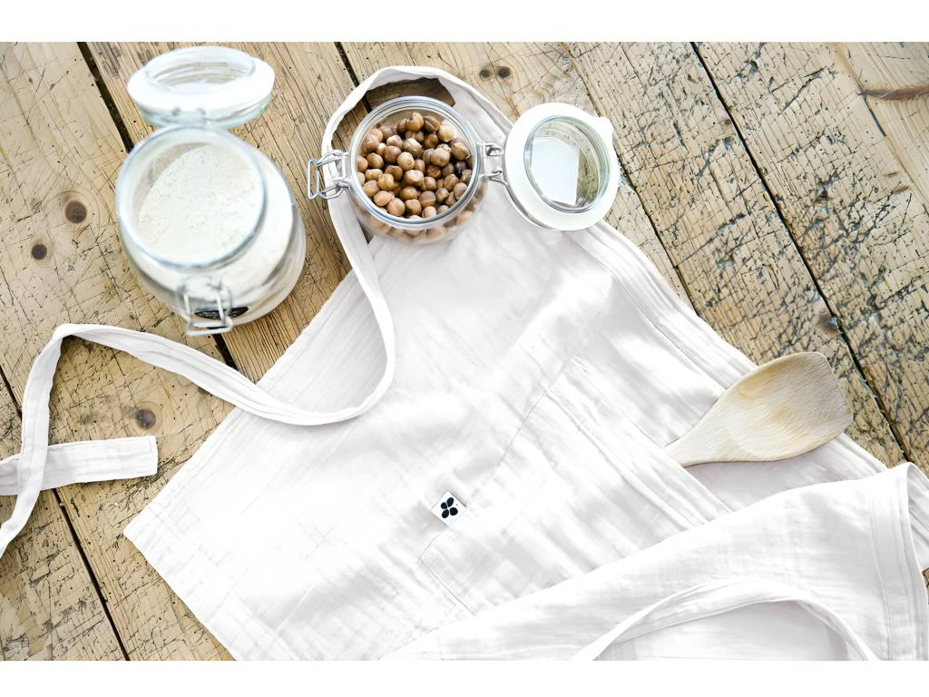 Et comme le plaisir recevoir est un art de vivre, la star de la cuisine c’est bien ce tablier de chef « Gaïa » 45 x 80 cm tendance et bohème en gaze de coton, une matière bien connue pour son pouvoir d’absorption, une matière légère, fluide et surtout très douce.