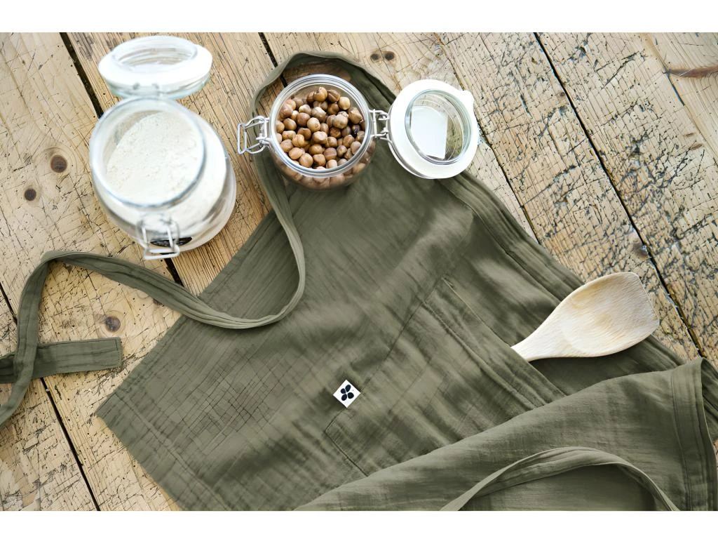Et comme le plaisir recevoir est un art de vivre, la star de la cuisine c’est bien ce tablier de chef « Gaïa » 45 x 80 cm tendance et bohème en gaze de coton, une matière bien connue pour son pouvoir d’absorption, une matière légère, fluide et surtout très douce.