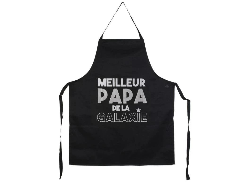 Parfait cadeau pour le meilleur des papas : le vôtre ! Protégez les vêtements de l’homme de votre vie et encouragez le à vous faire ses plats les plus délicieux ! Vous pouvez aussi contribuer à améliorer ses compétences culinaires si celles-ci ne sont pas parmi ses qualités des plus pertinentes ! Avec des messages faisant directement echo à l’une des plus grande licence cinématographique, vous ne pouvez que faire mouche avec le meilleur des tabliers pour le meilleur des papas.