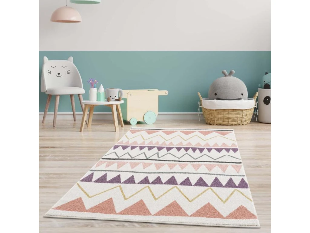 Tapis Pour Chambre D’enfant Crème Motif Géométrique Rose 80x150cm