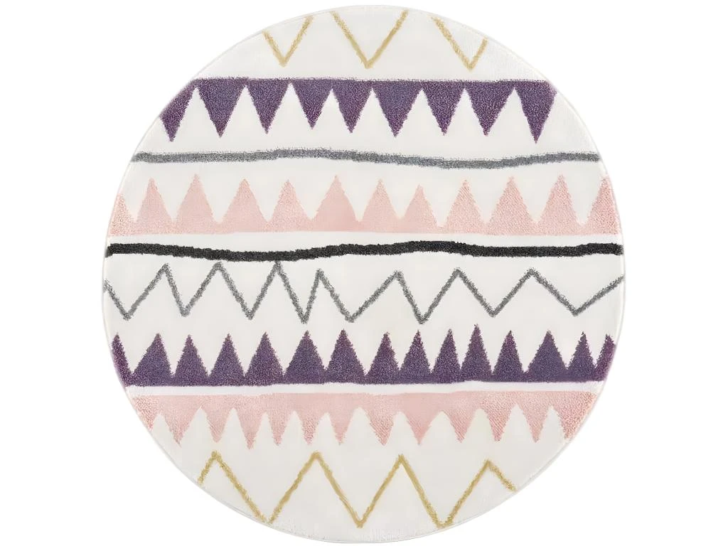 Tapis Rond Pour Chambre D’enfant Crème Motif Géométrique Rose 160x160cm