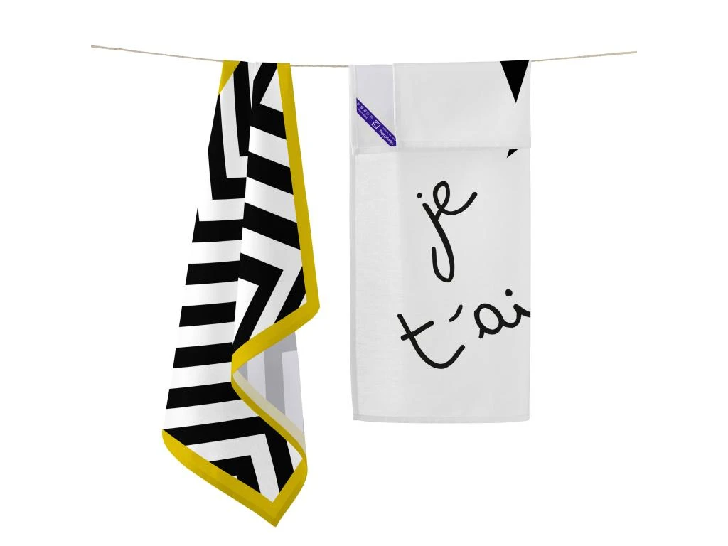 Lot de 2 torchons entièrement fabriqués en Espagne en tissu « panama » 100% coton. Chaque pièce a un design différent et une patte de suspension cousue pour l’accrocher facilement. Impression digitale haute définition, solidité des couleurs et résistance au lavage.