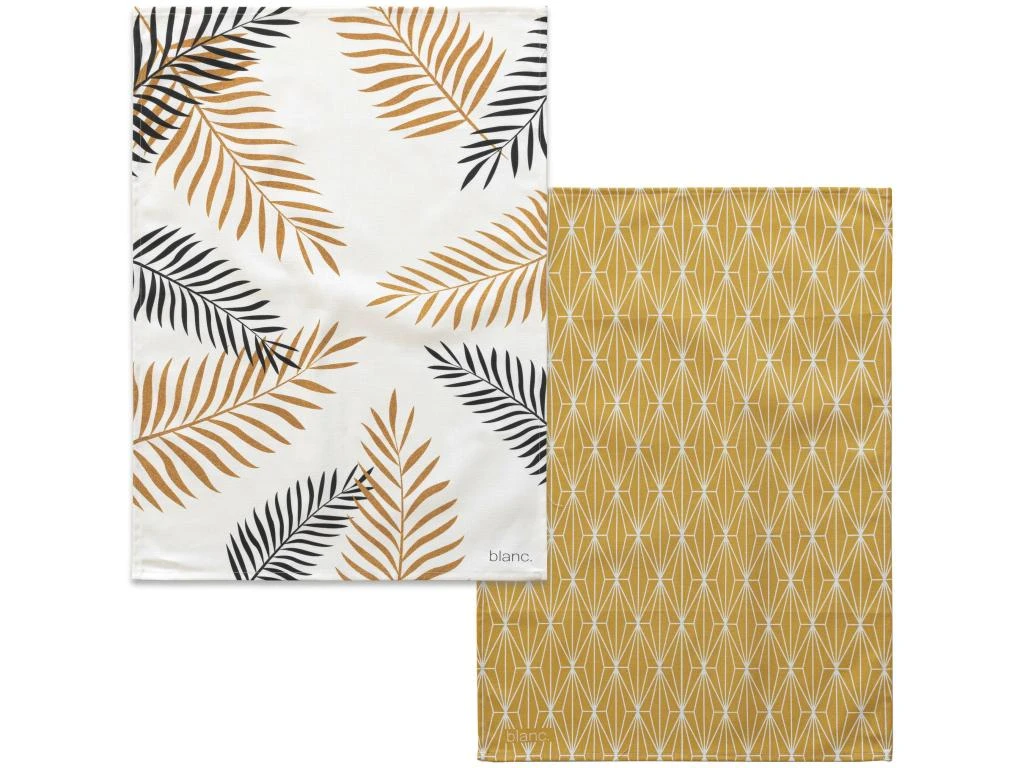 Lot de 2 torchons entièrement fabriqués en Espagne en tissu « panama » 100% coton. Chaque pièce a un design différent et une patte de suspension cousue pour l’accrocher facilement. Impression digitale haute définition, solidité des couleurs et résistance au lavage.