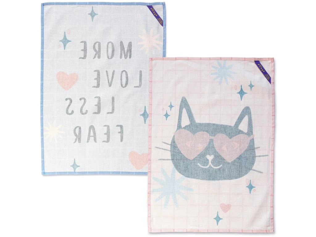 Torchon (2 Pièces) 70x50 Cm Meow Love