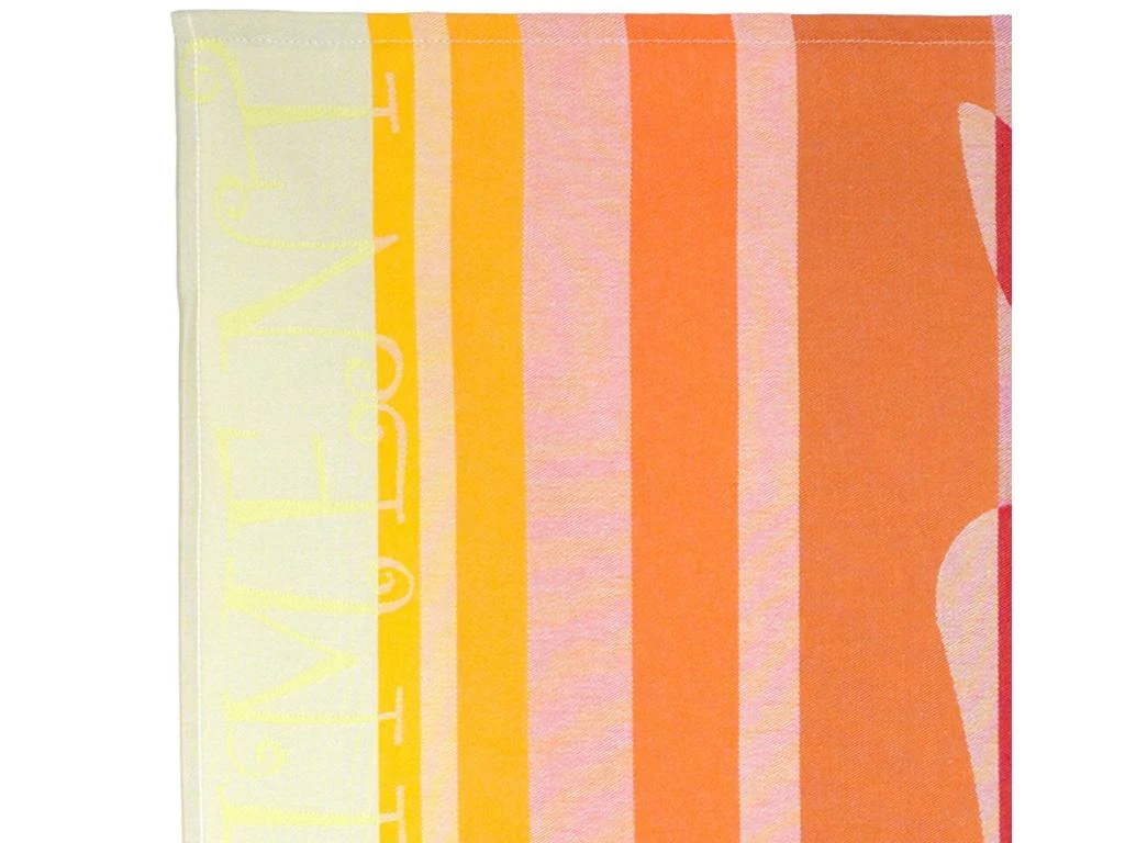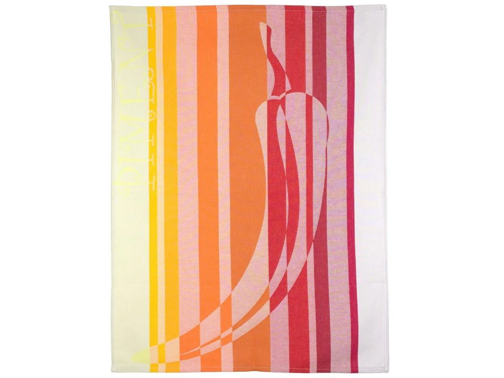 Un piment décore ce torchon aux rayures multicolores, pour amener un peu de piquant dans votre cuisine.