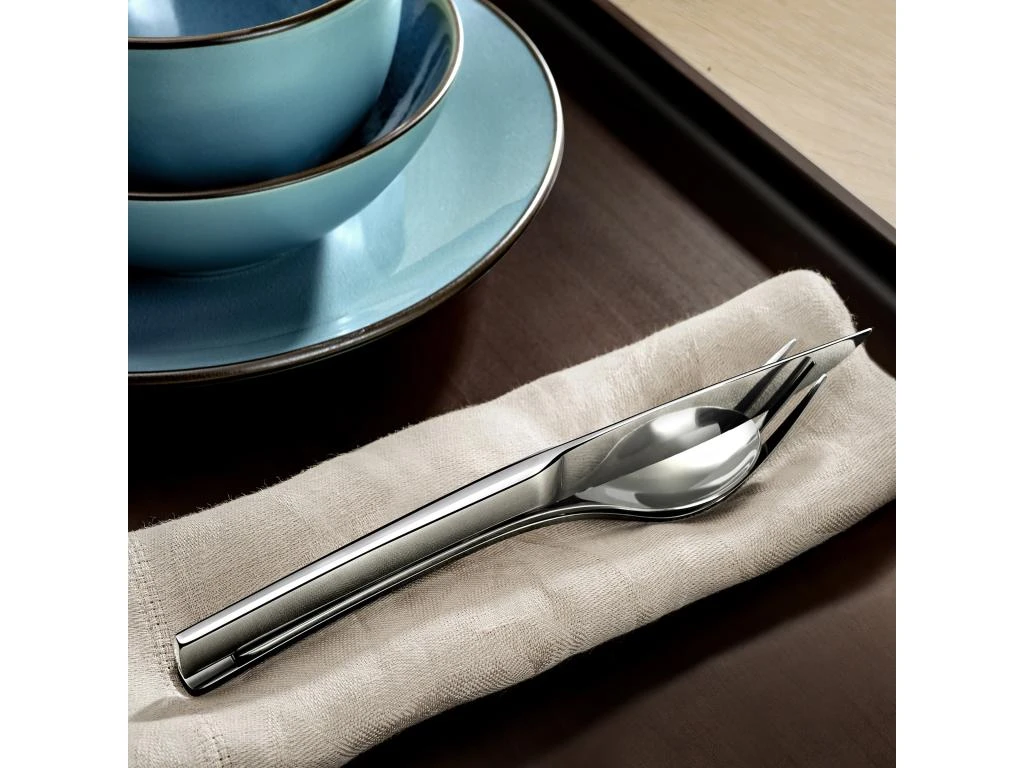 Elégants et astucieux, les couverts de la gamme Trilogy s’empilent en un clin d’œil. Un couvert aux lignes modernes pour une table qui sort du lot.