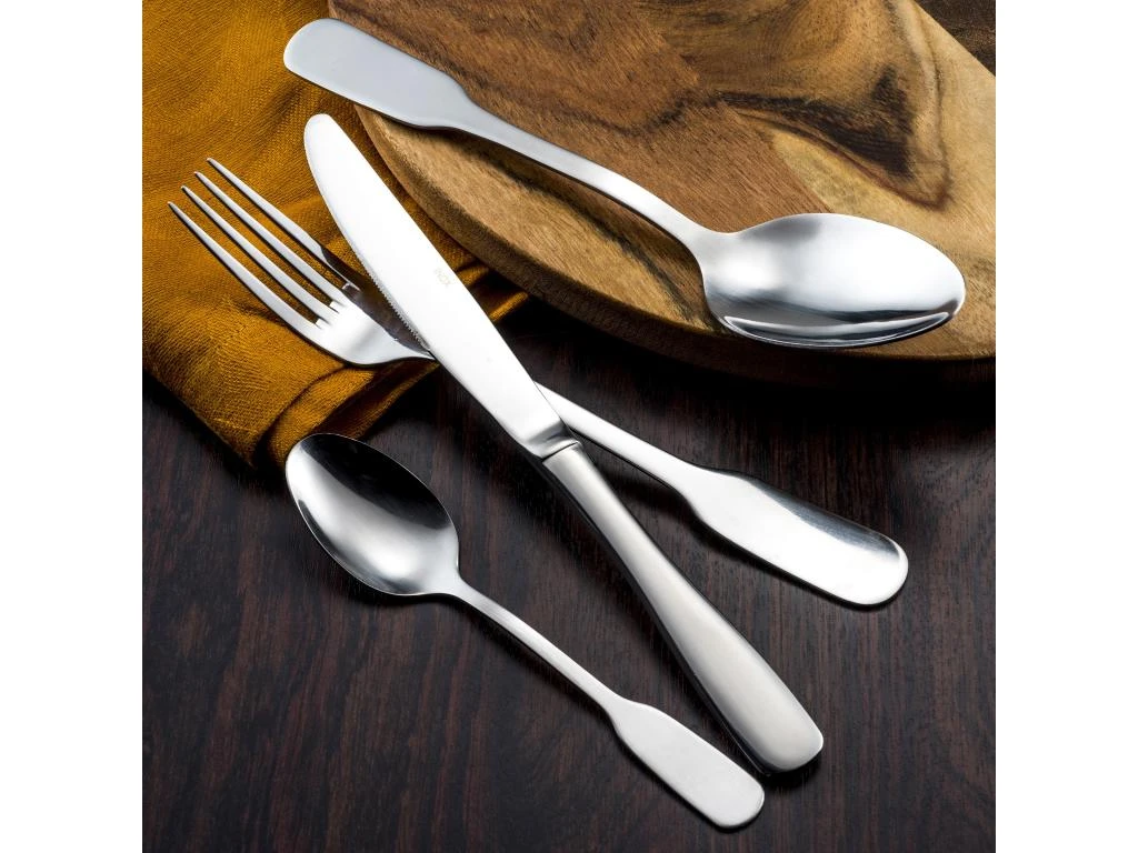 La gamme Triomphe associe l’épure à une ligne classique et raffinée. La base des couverts est légèrement élargie pour un rappel de table gastronomique.
