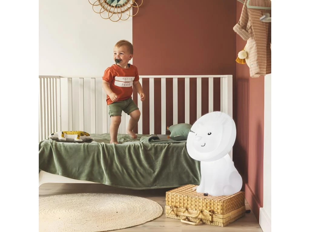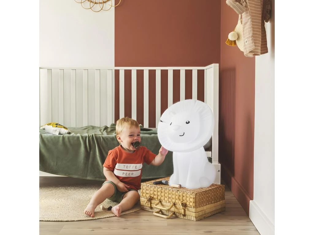 La lampe veilleuse Hakuna est à la fois une lampe d’ambiance mais également une enceinte Bluetooth. En forme de lion et diffusant une lumière rassurante dans la pièce, elle sera la meilleure amie de votre enfant une fois la nuit tombée. Grâce à la télécommande très facile à utiliser, vous pourrez programmer la couleur des lumières et adapter ainsi l’ambiance selon votre humeur et vos besoins. Vous pourrez aussi choisir de diffuser simultanément votre musique préférée. Fonctionnant sur batterie ou sur secteur, elle pourra être rechargée à l’aide du câble inclus et utilisée absolument partout. Inclus : Ampoule LED, câble de recharge et télécommande Enceinte Bluetooth Ampoule : LED multicolore Alimentation : Batterie ou secteur Matière : Polyéthylène recyclable Dimensions : L. 34 x l. 34 x H. 50 cm