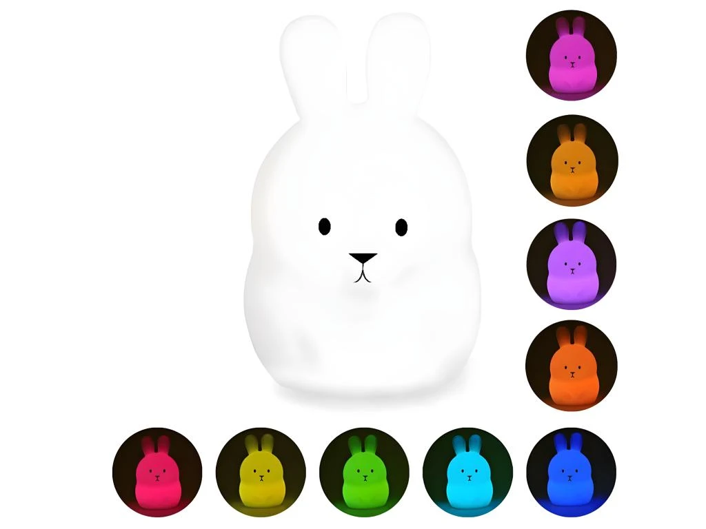 - PRATIQUE, ROBUSTE & FUN : la veilleuse LED d’une hauteur de 19cm et large de 14cm. La lampe sans fil Bunny est en silicone souple et se nettoie facilement avec de l’eau tiède et du savon doux.