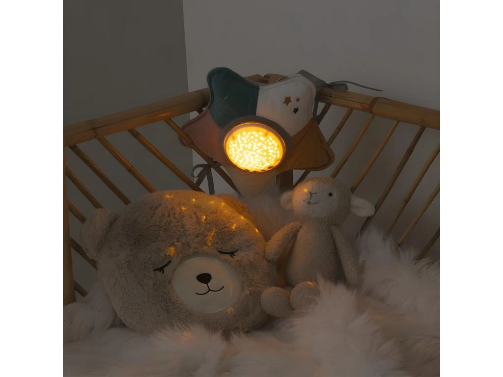 Pour émerveiller et enchanter les plus petits… La veilleuse Etoile Atmosphera accompagnera votre petit bout durant ses nuits et siestes. Attaches permettant une accroche aux barreaux du lit. Fonction musicale. Différentes couleurs de lumière. Dimensions : L. 25 x l. 7 x H. 25 cm. Matière de l’étoile : Polyester. Matière du boîtier : Polypropylène. Type de pile(s) : 3 x AA / LR06 non incluses. Nombre de LED : 3. Puissance max : 1,5 V. Poids : 0,180 kg. Marque : Atmosphera.