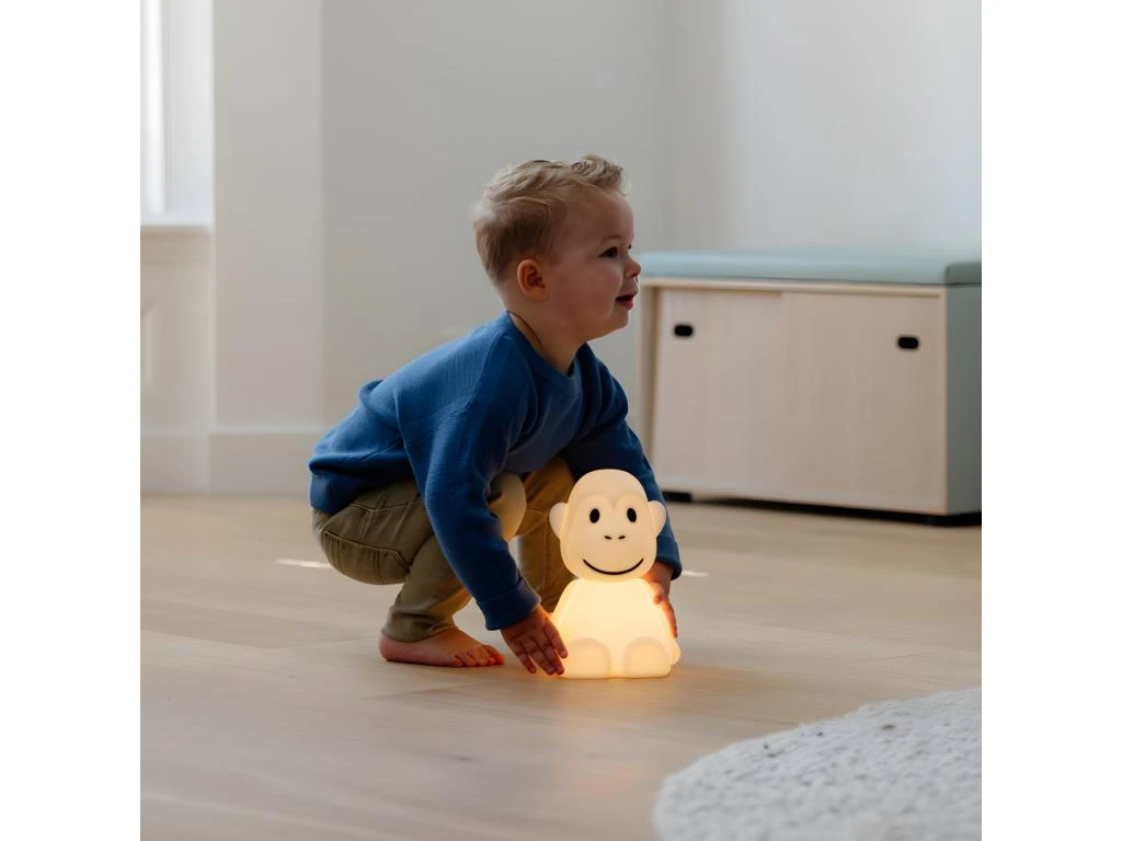 Une veilleuse en forme de singe toute molle qui produit une lumière douce sur 6 niveaux d’intensité. Se recharge rapidement par micro-usb. Matière : ABS mou et vinyl Dimensions : 15 x 15 x 23 cm