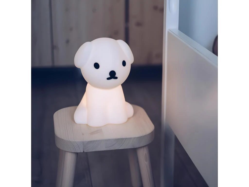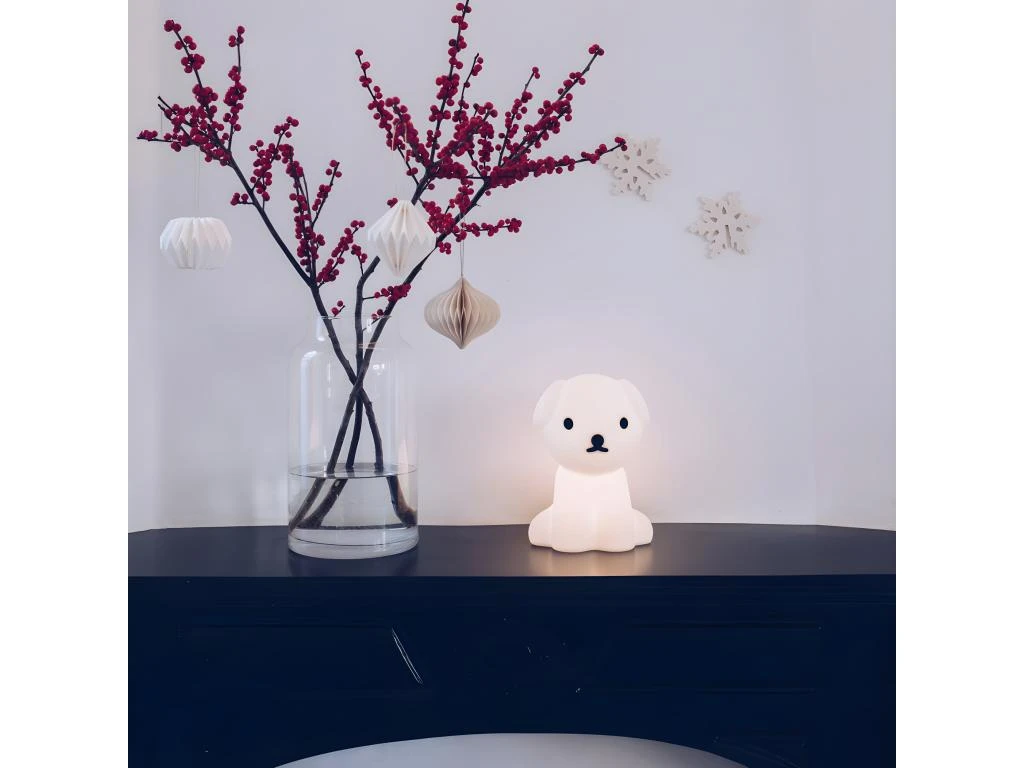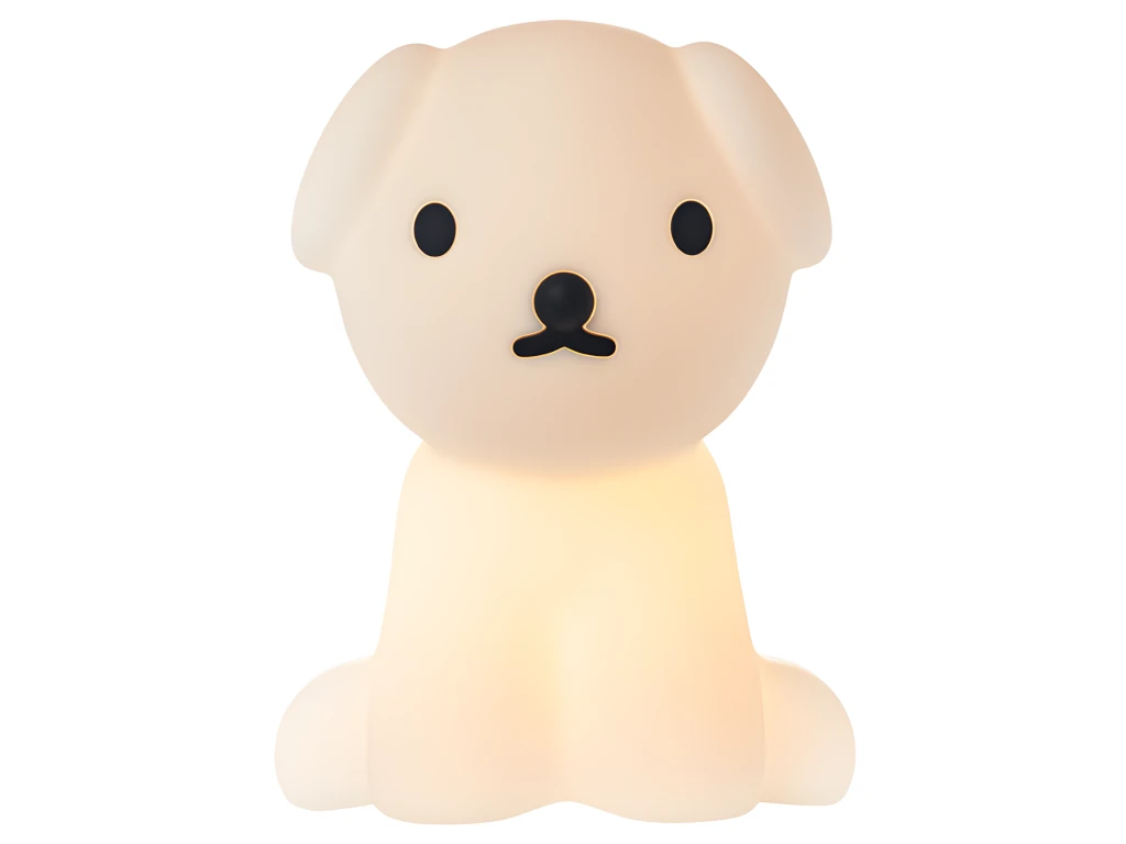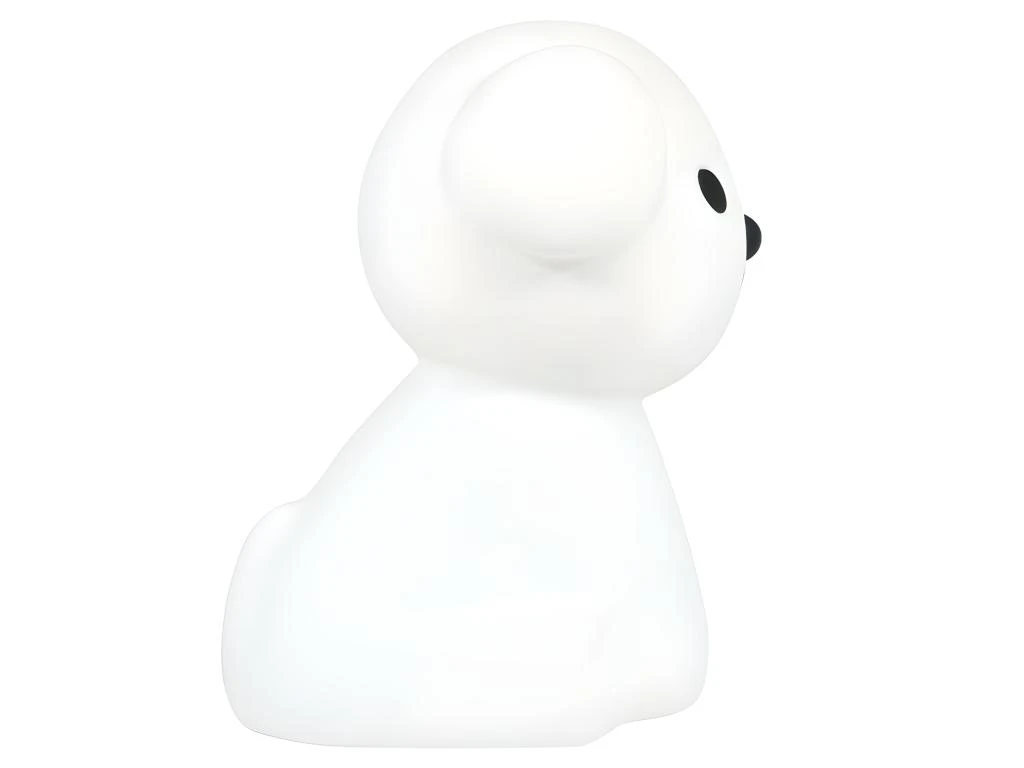 Une veilleuse toute molle en forme de chien assit qui produit une lumière douce sur 6 niveaux d’intensité. Se recharge rapidement par micro-usb. Matière : ABS mou et vinyl Dimensions : 14 x 20 x 21cm