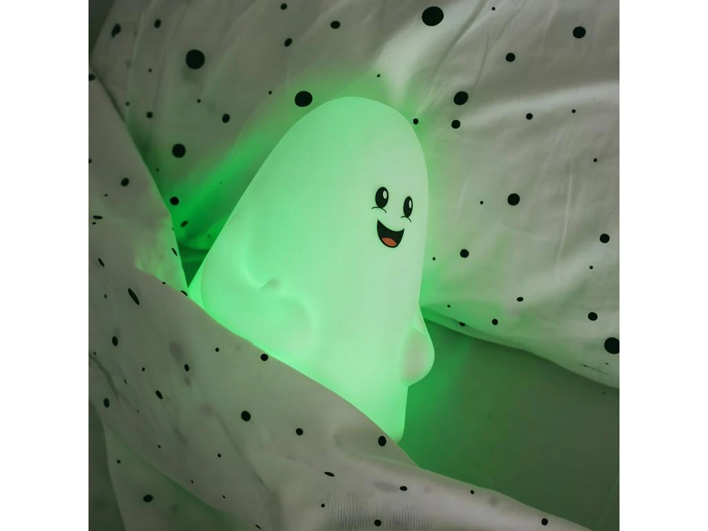 Boooooo, ce gentil petit fantôme vous veillera toute la nuit pour éloigner les monstres en tout genre ! Une tape sur la tête de la veilleuse et elle s’allume ou change de couleur : rouge, les monstres sont là bleu, je les scanne pour les étudier vert, je les repousse blanc, je veille sur toi toute la nuit. Dimensions : 20 x diam. 15cm Matière : Silicone Caoutchouc et Module MrLED11