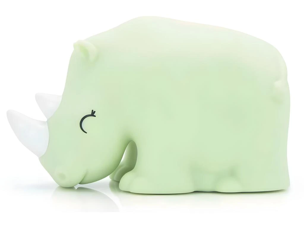 Veilleuse Rhinocéros LED Lumière multicolore par défilement – Lumière LED – Mode normal – Mode minuterie : s’éteint au bout de 15 minutes – Interrupteur ON/OFF sous la licorne – Fonctionne sur piles : 3 LR44 (fournies) – En PVC Dimensions : 9 x 6 x 7 cm